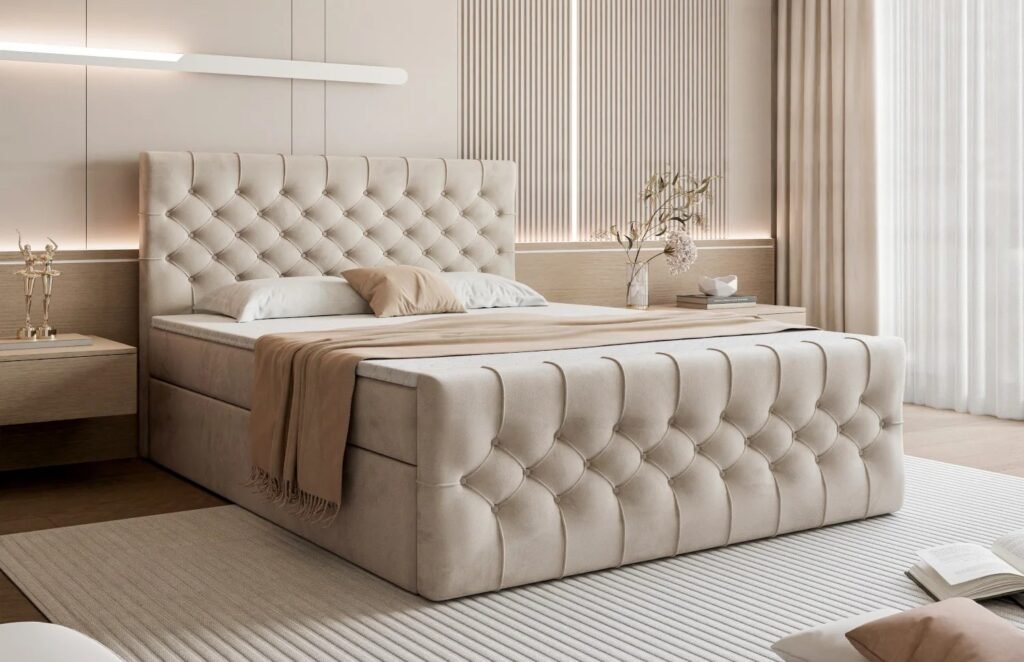 Z kolei łóżko kontynentalne kojarzy się z komfortem i elegancją rodem z luksusowych hoteli. Charakterystyczny wysoki korpus sprawia, że takie łóżko prezentuje się wyjątkowo efektownie i staje się centralnym punktem sypialni. To rozwiązanie dla osób, które chcą dodać wnętrzu prestiżu i wyrazistego charakteru. Również tutaj istnieje możliwość wyboru różnych tkanin i kolorów, co sprawia, że łóżko świetnie komponuje się z każdym wystrojem.