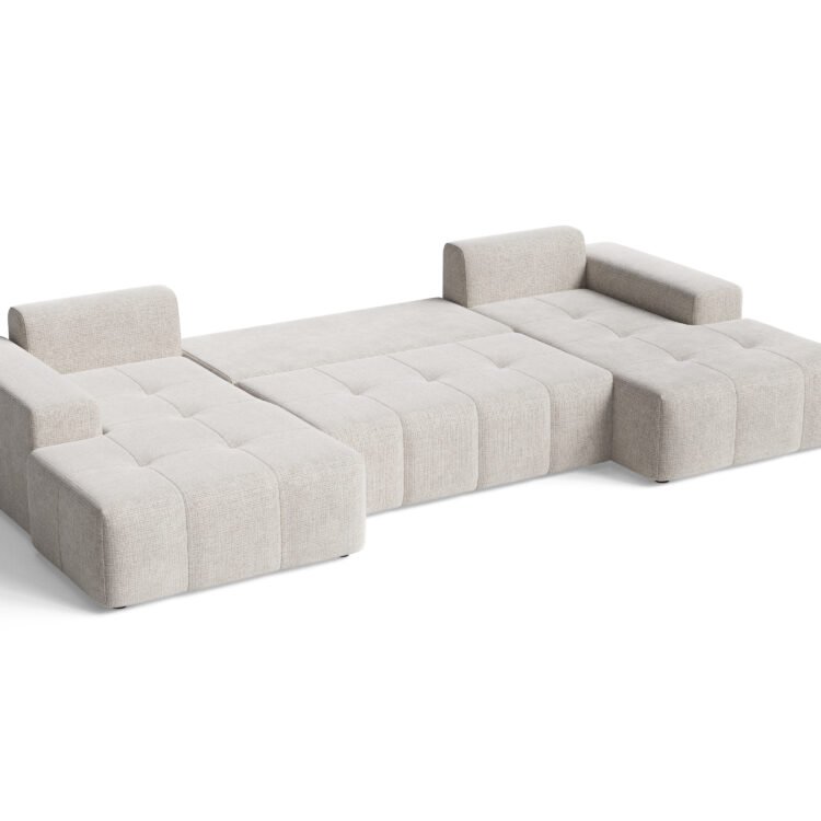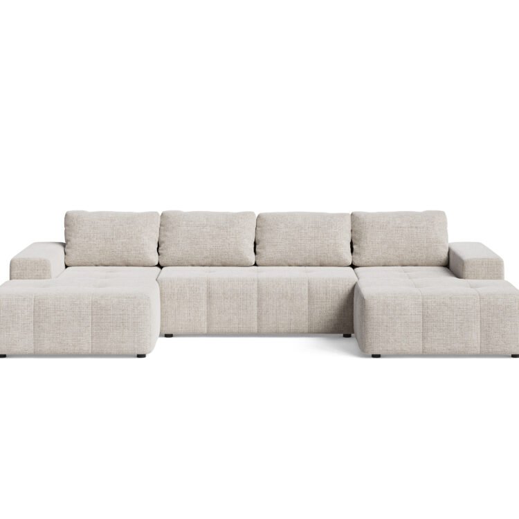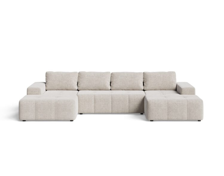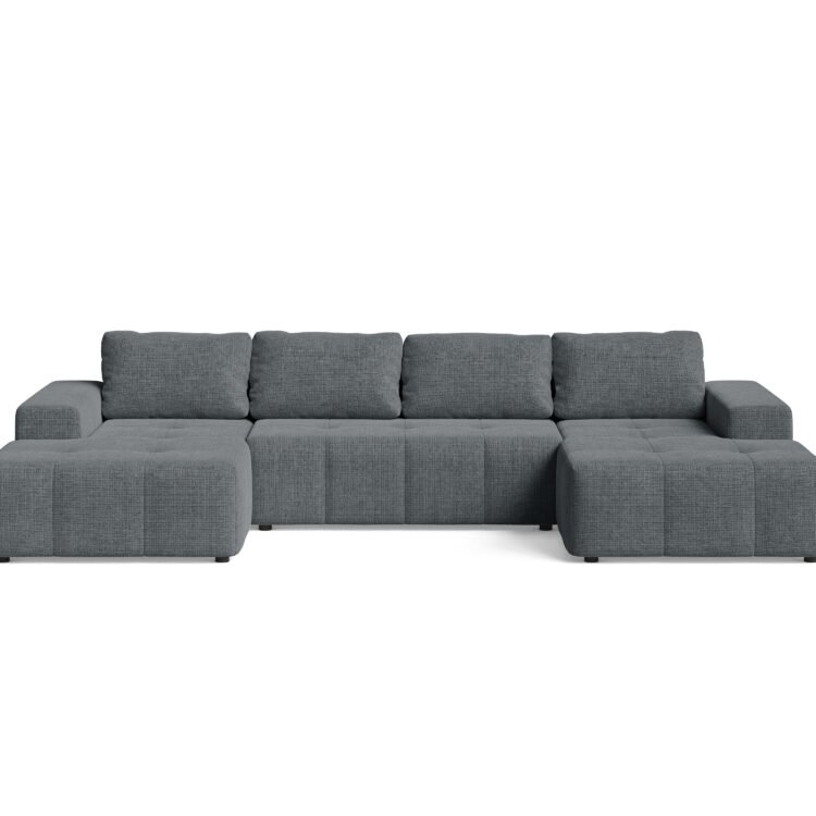 BERGAMO to duży, nowoczesny narożnik U do salonu, który łączy wysoką funkcjonalność z wygodą i przestrzenią do codziennego relaksu. Kształt litery U sprawia, że mebel staje się centralnym punktem wnętrza i zapewnia sporo miejsc siedzących dla całej rodziny.