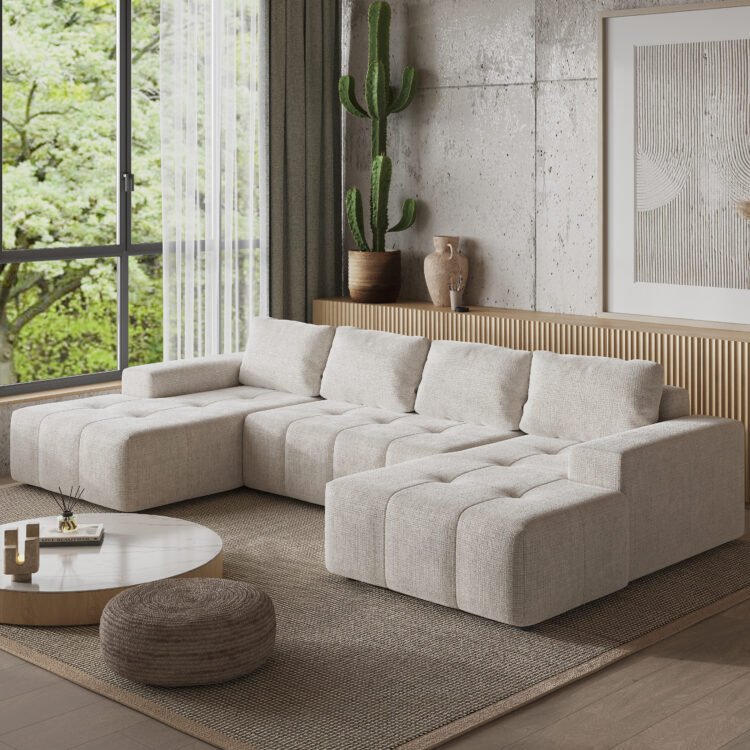 Duży narożnik w kształcie U BERGAMO – elegancja i komfort w Twoim salonie