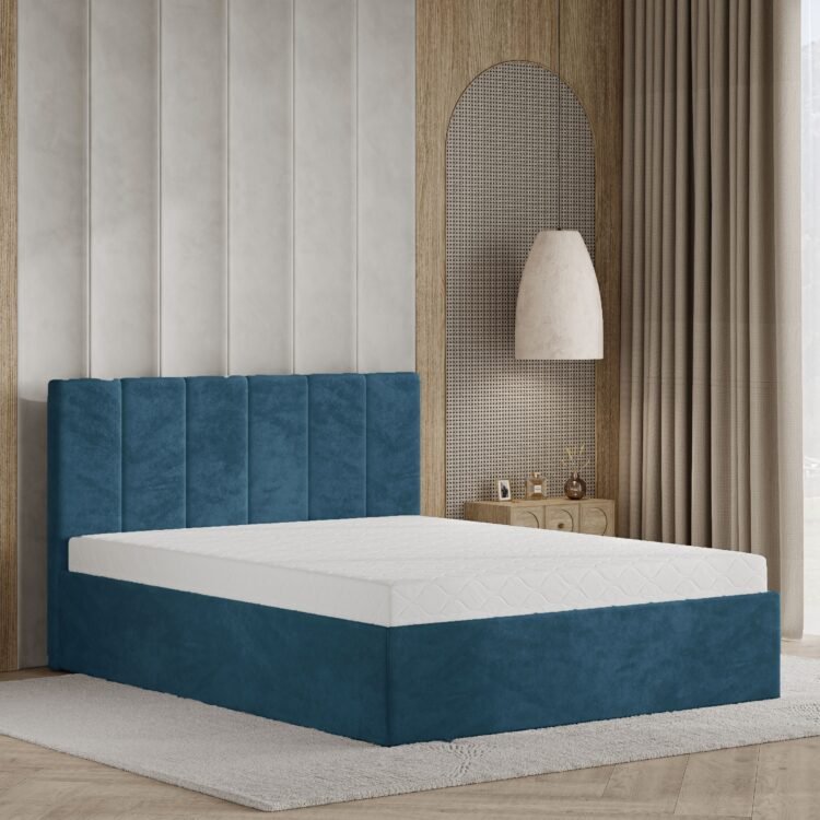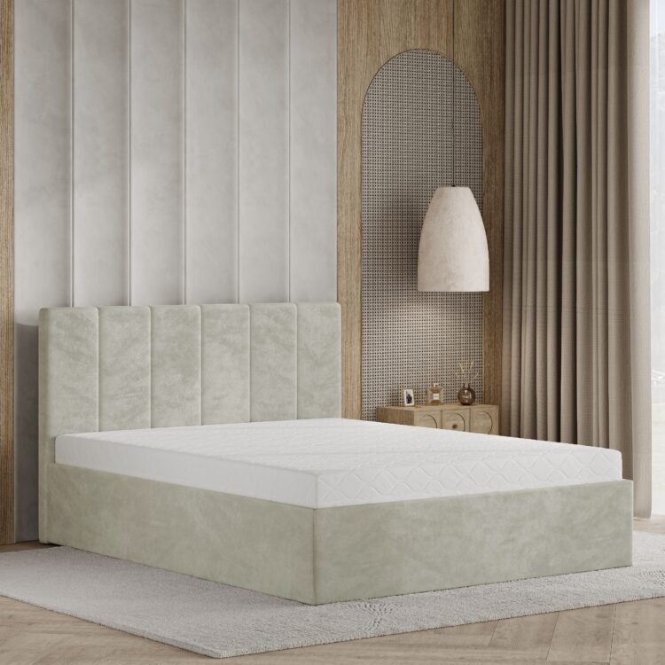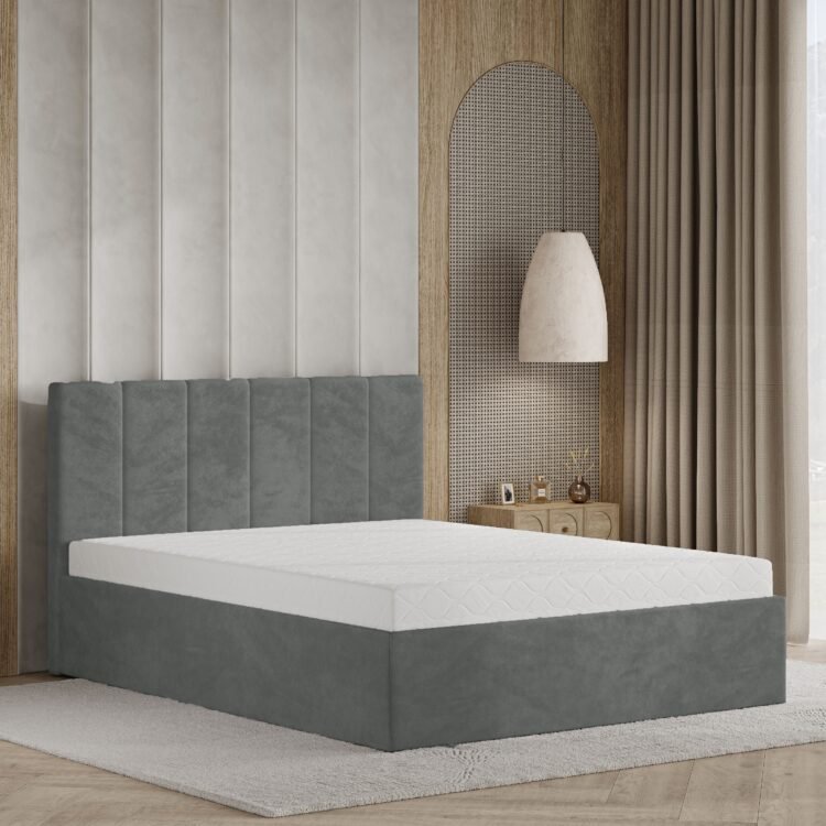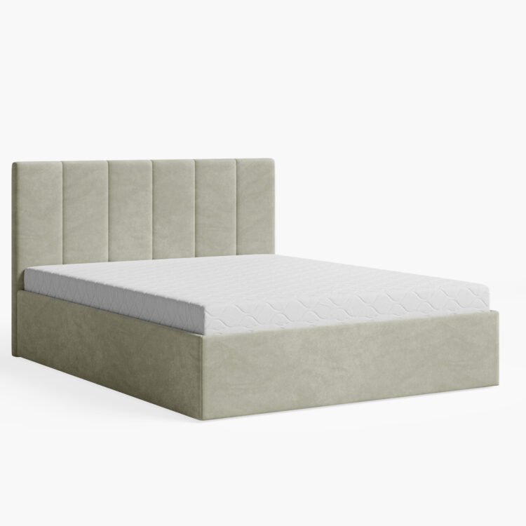 • Tapicerowany, pionowo pikowany zagłówek – elegancki akcent, który dodaje sypialni charakteru.