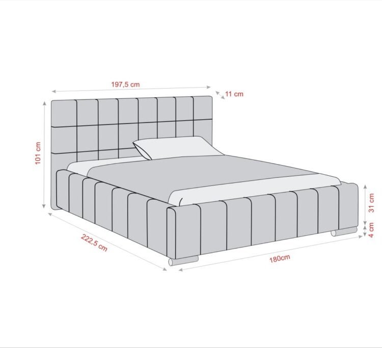- Powierzchnia spania: 140/160/180 x 200 cm + 17,5 cm (całkowita szerokość)