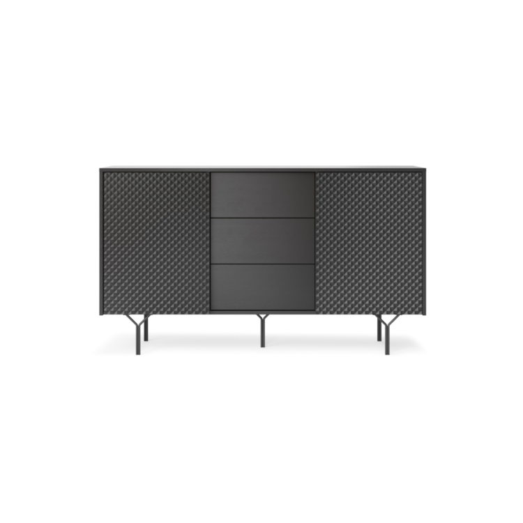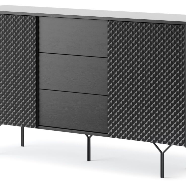 - Nowoczesny design: Frezowane fronty wykonane w technologii 3D dodają komodzie unikalnego charakteru, a także elegancji.